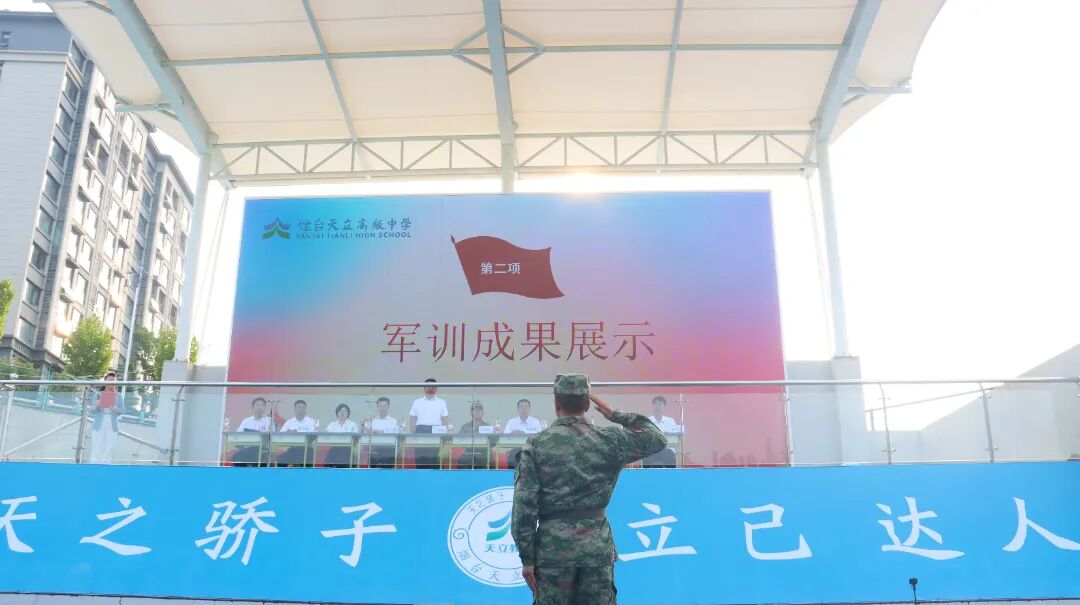 军绿色生长于天蓝之下,滴滴汗水摔进绿茵场地。风与烈日交织,唱响天籁协奏曲。夜晚灯火通明,运动场上军歌嘹亮。天立少年沾白露之霜,扬威威军魂。在心有青云之志的高一开端,在坚定矢志不渝的训练途中,学子们脚下的路一步一步高,心中的梦想也一点一点长。军训就是这样,让我们在烈日与歌声中重塑青春信仰。8月29日,烟台天立高级中学2025级军训圆满闭营。