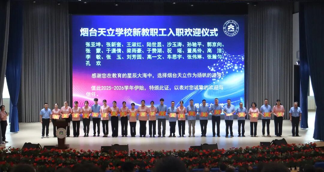 会议伊始,学校举行新教职工入职欢迎仪式,烟台天立学校总校长张庆刚、学校执行校长孙旭峰为新教师颁发纪念证书,表达学校对老师们的诚挚欢迎与信任,感谢他们在教育的星辰大海中选择烟台天立作为扬帆的港湾。