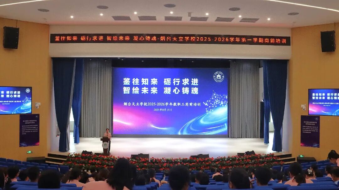为进一步深入贯彻和落实天立教育集团2024-2025学年工作总结会暨人事、品宣专题会内容及精神,凝心聚力共画烟台天立新篇章,烟台天立学校于2025年8月19日在学校报告厅举行了2025—2026学年第一学期教职工岗前培训,全体教职工出席了本次会议,办公室主任韩德庆主持了此次培训。